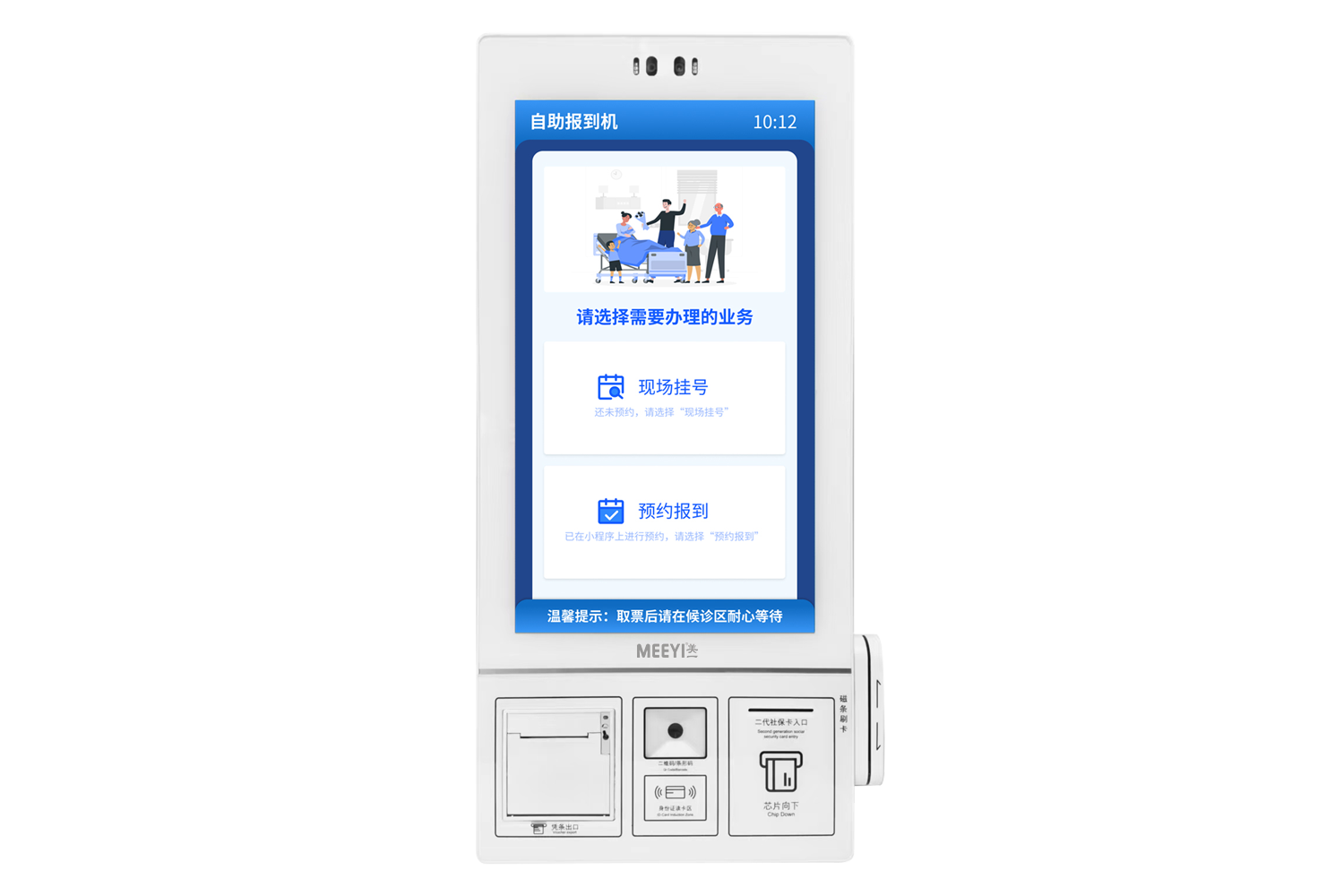 6. 多种身份验证:支持身份证、医保卡、就诊卡、二维码等多种身份验证方式,可供客户自行选配;
